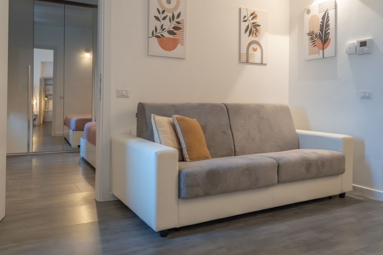 - Zona living ampia con un comodo divano letto e una Smart TV, ideale per il relax o per una serata film.