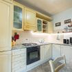 Cucina fornita di elettrodomestici, utensili e accessori, con un salone relax-studio.