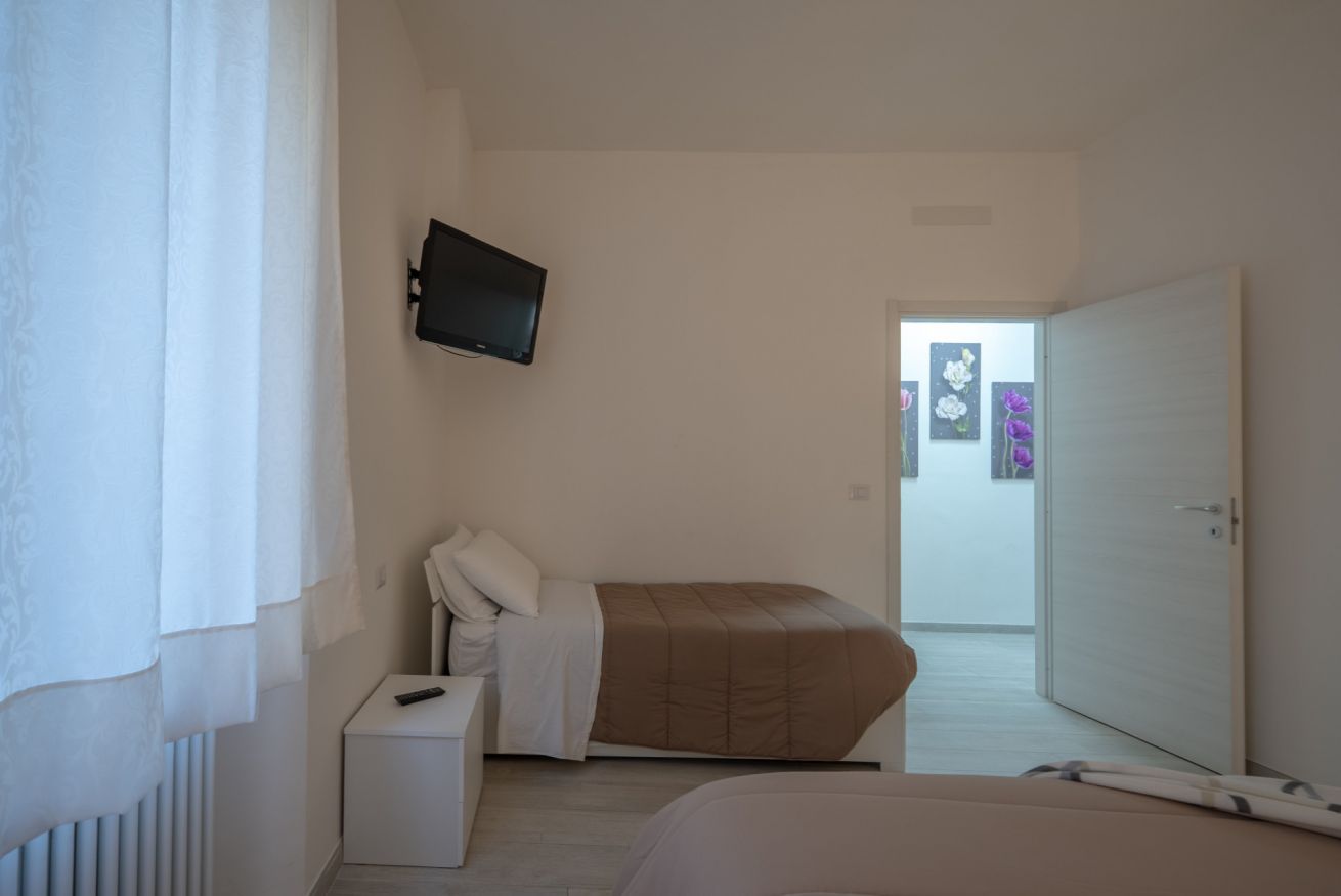 All’interno troverai una camera da letto matrimoniale molto spaziosa, dotata anche di un letto singolo, perfetta sia per coppie che per piccoli gruppi o famiglie. La luce naturale inonda la stanza, creando un’atmosfera calda e rilassante.