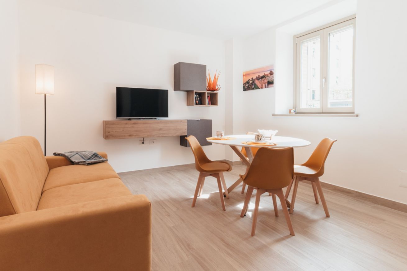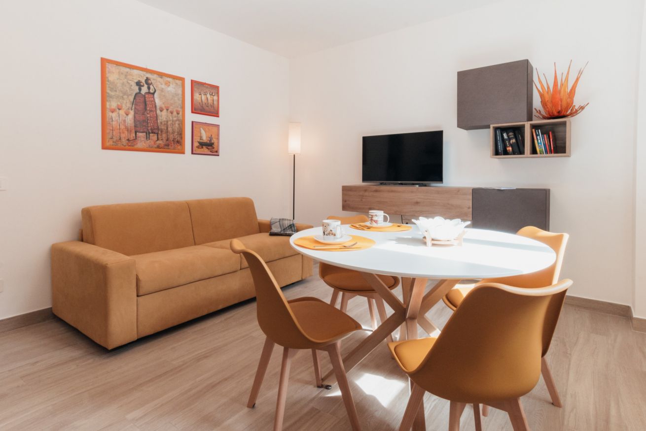 - Soggiorno con angolo cottura completo e TV, ideale per momenti di relax o pasti in autonomia.