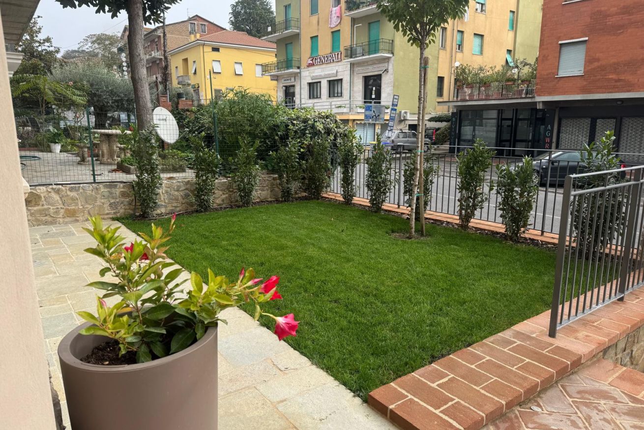 Il giardino esterno è uno spazio condiviso all’interno della proprietà: è suddiviso idealmente tra i due appartamenti (lato sinistro per Apt Left e lato destro per Apt Right). Non è presente un divisorio fisico, ma ogni appartamento utilizza la propria area in modo riservato.